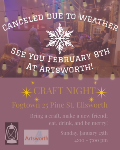 Fri06Feb2026Sat07Feb20262/6 4-7pm 2/7 10am-2pm25 Pine Street Ellsworth, Maine, 04605
